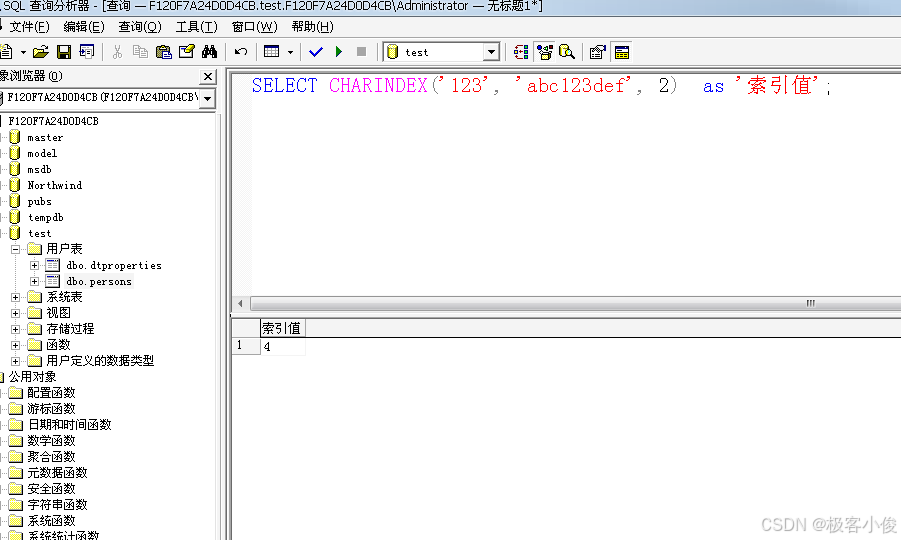 CHARINDEX() 函数 获取字符串索引值