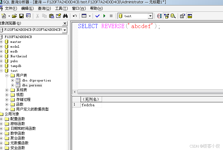 SELECT REVERSE('abcdef');