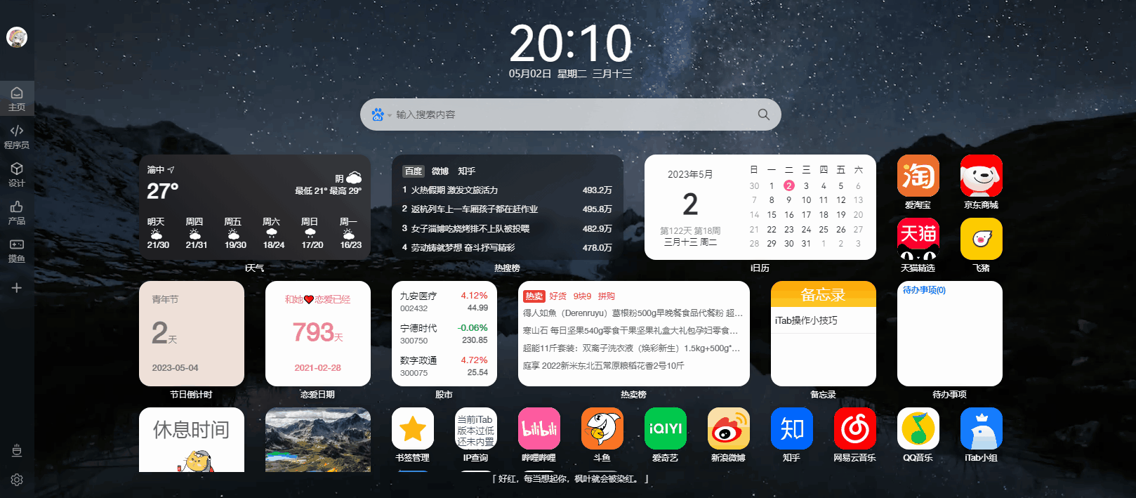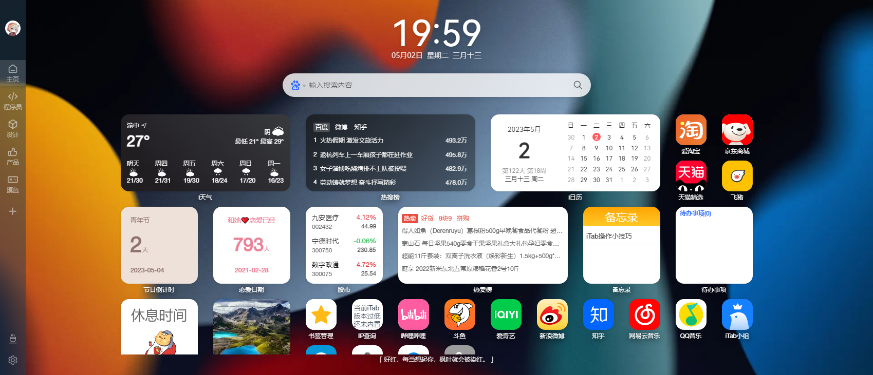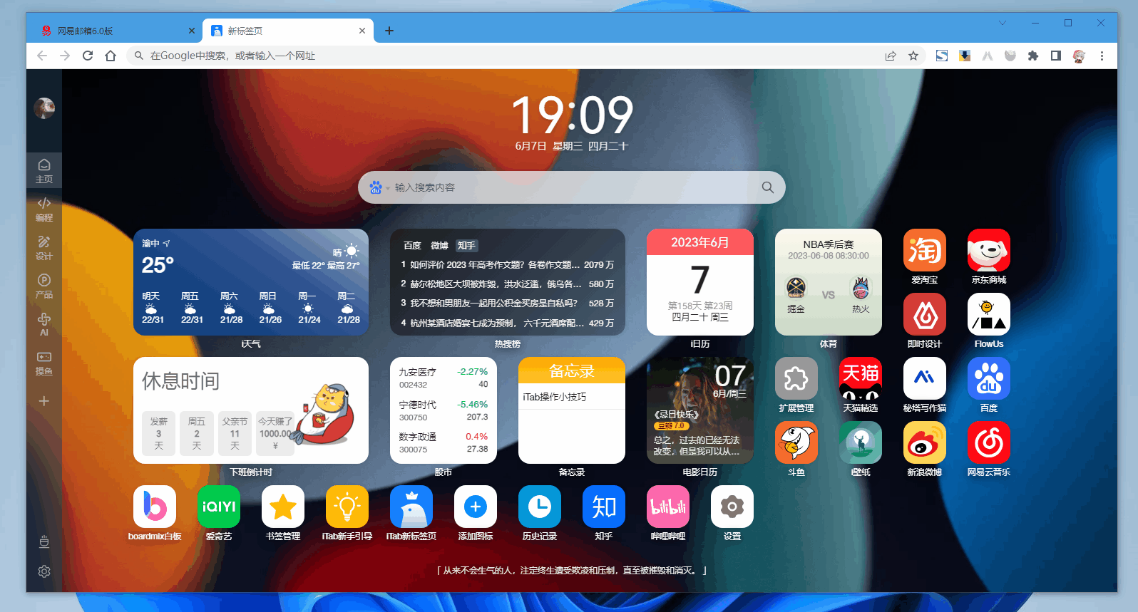 如果你把浏览器当电子手账,喜欢每天换背景、加小组件,选iTab准没错~