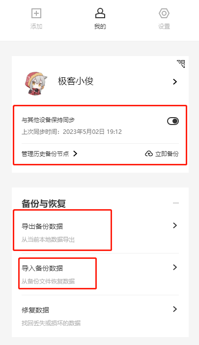 与其他设备保持同步一般我都会勾选, 管理历史备份节点也方便我跳转到某个备份时间点