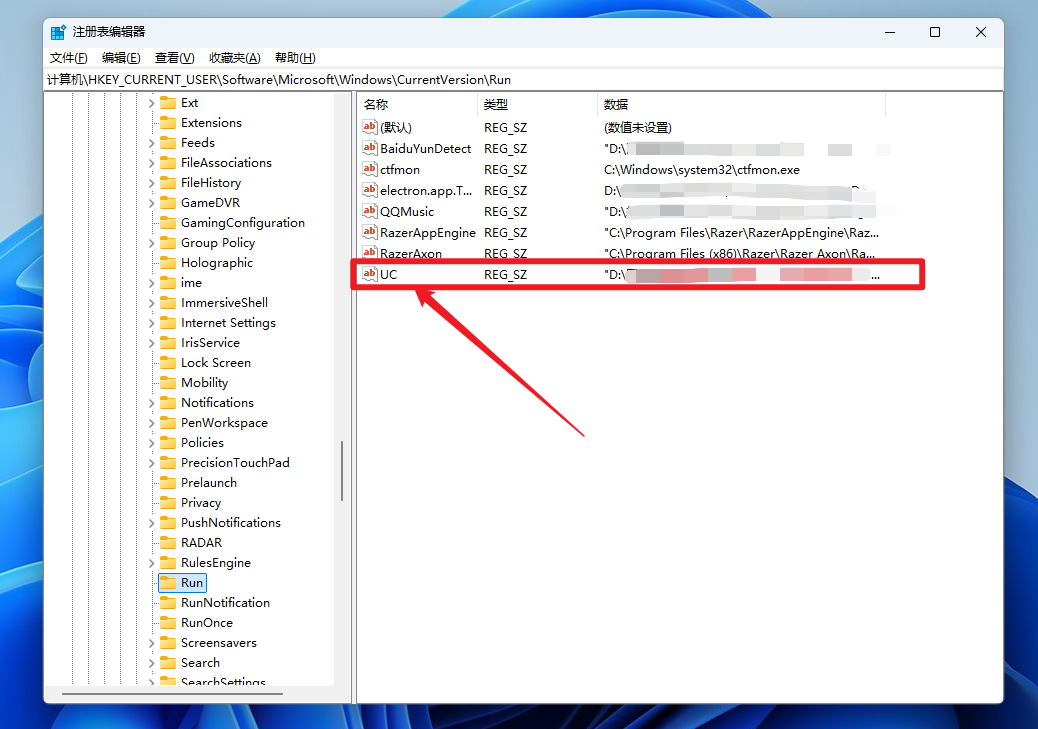 找到UC, 删除含UC关键字的注册表项~ 重启电脑, 它就不能再恶心你了! 赶紧去试试看吧!!