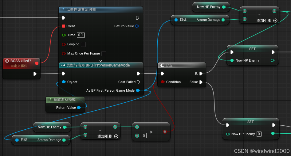 当前HP-子弹伤害>0时,设置当前HP=当前HP-子弹伤害,并设置GM里的BOSS当前HP;