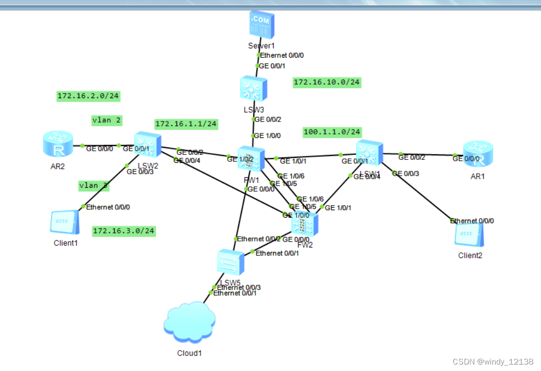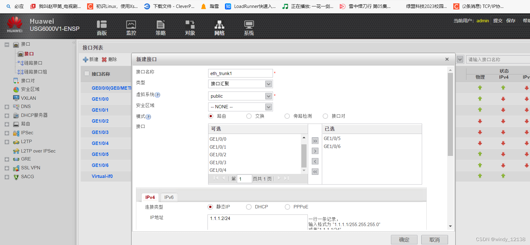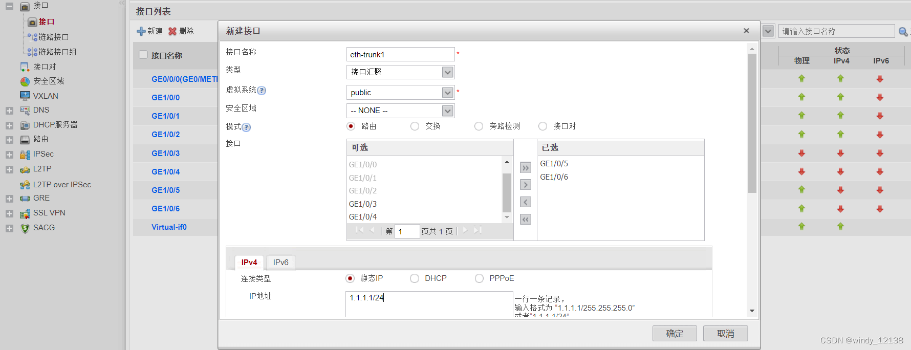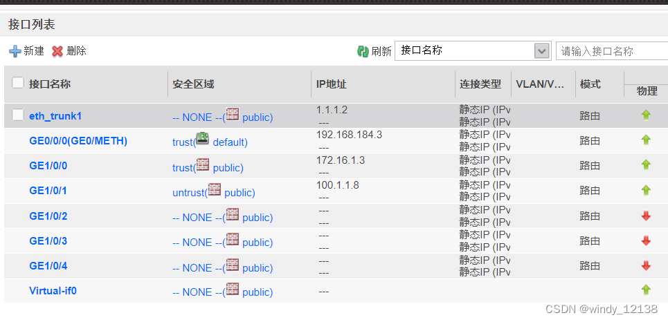 物理接口:防火墙支持的接口可以是二层的接口,也可以是三层接口
