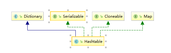 - 自从JDK1.2开始,Hashtable实现了Map接口,成为了Map容器中的一员。看样子最开始是不属于Map容器的。