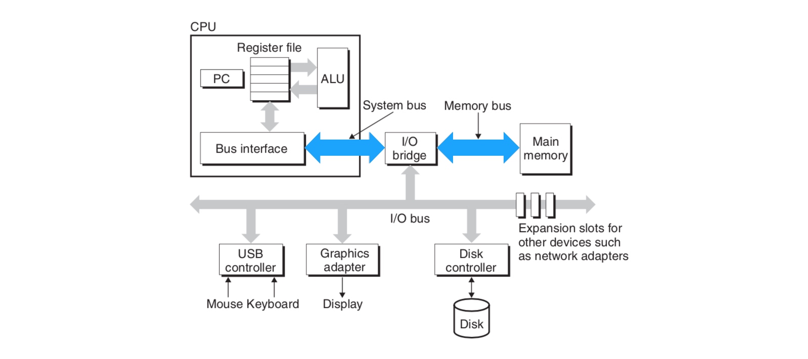 我们都知道,CPU 是通过总线和内存进行数据传输的。在多核心时代下,多个核心通过同一条总线和内存以及其他硬件进行通信。如下图: