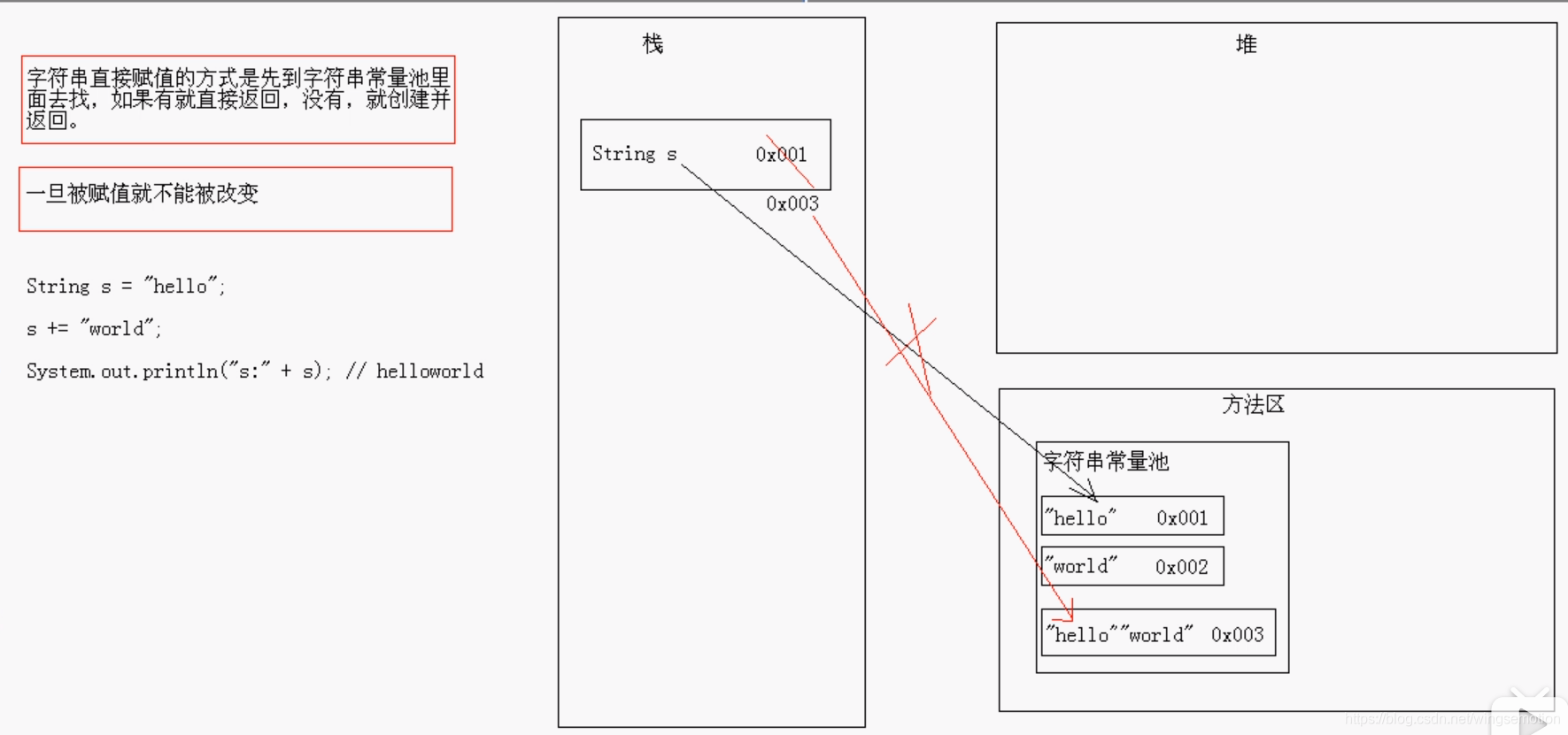 字符串一旦赋值就不能改变,但是s+="world"这种并不属于