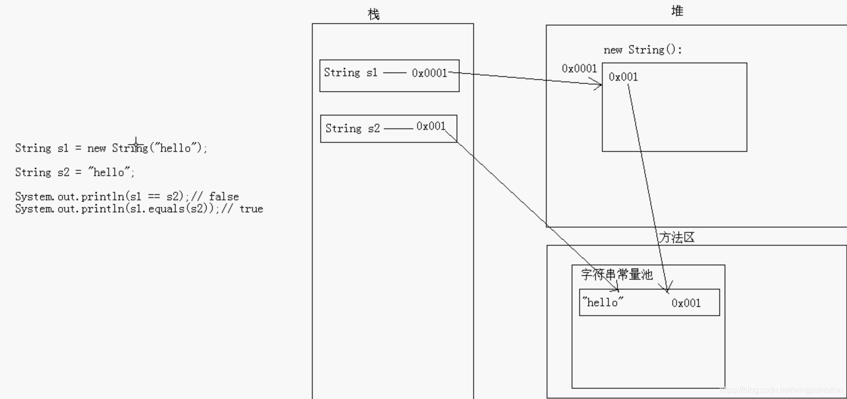 String字面值对象和构造方法创建对象的区别:前者会创建2个对象,后者创建1个对象