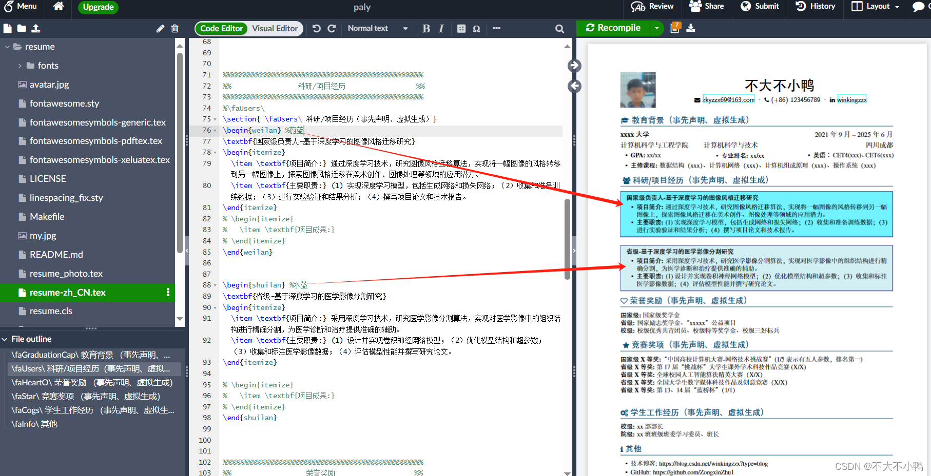 直接下载我设置好的模板在Overleaf, Online LaTeX Editor上进行自己的DIY吧!!!!!