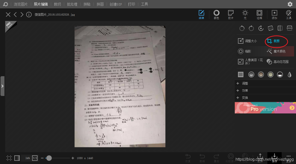 经常遇到:微信接收对方手拍的试卷,需要打印出来。但由于是手拍的,所以有一定的倾角,打印出来不美观,现将photoscape X 软件的纠偏方式记录下来: