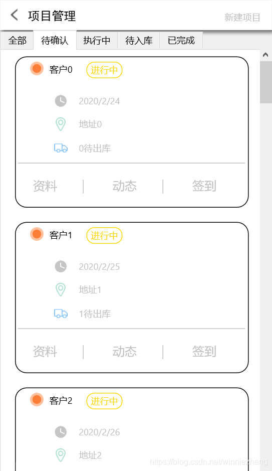 思路:使用ListBox加入Frame来实现,ListBox为容器显示重复记录,Frame作为单个内容展现的组件。