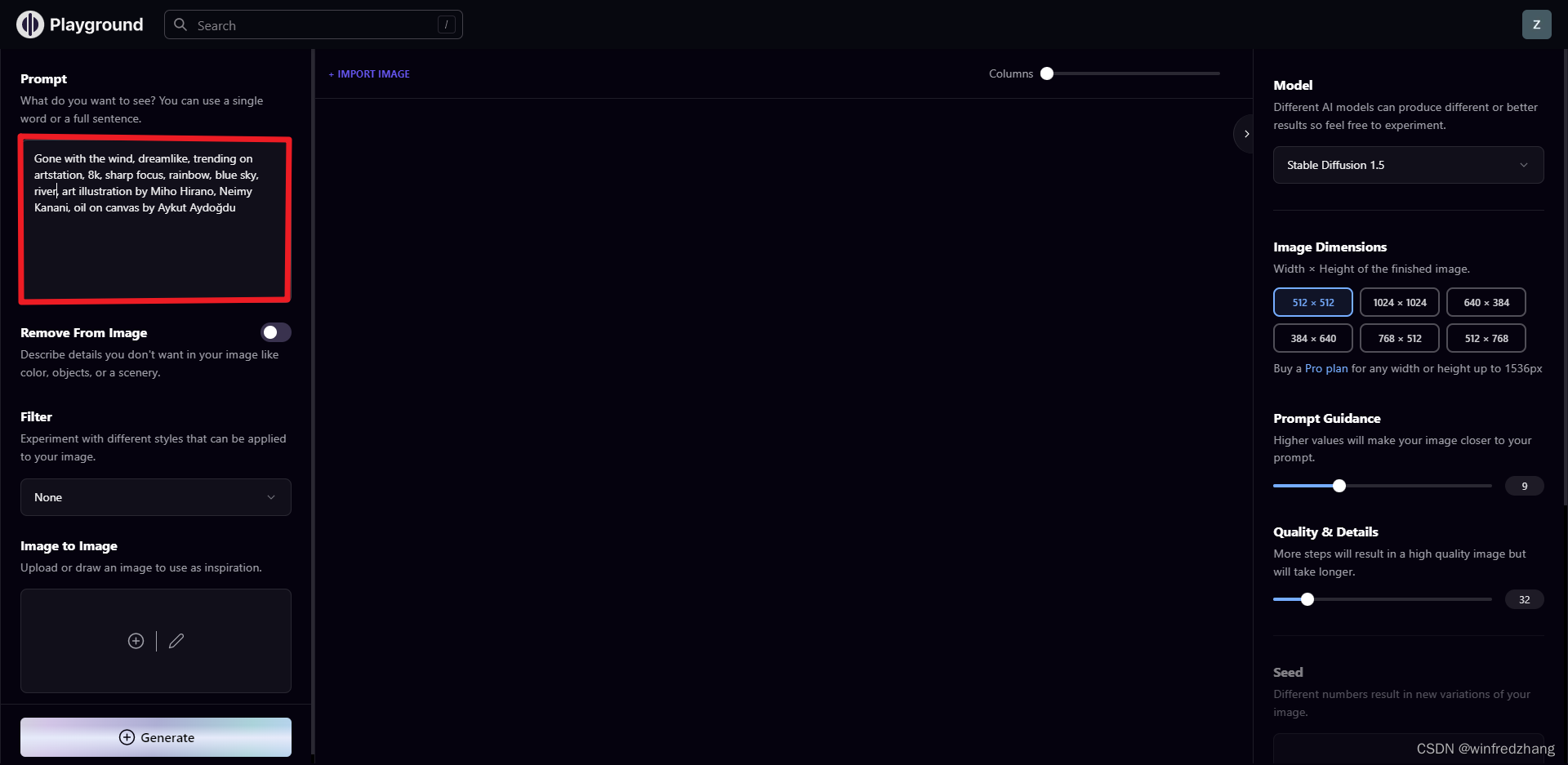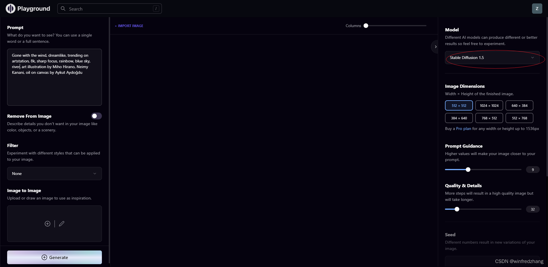 博客介绍了在https://playgroundai.com/网站使用StableDiffusion的操作步骤。需用Google帐号登录,点选首页图片,复制脚本,在创建窗体输入框粘贴并修改脚本,选用stable diffusion 1.5模型,最后按创建按钮。