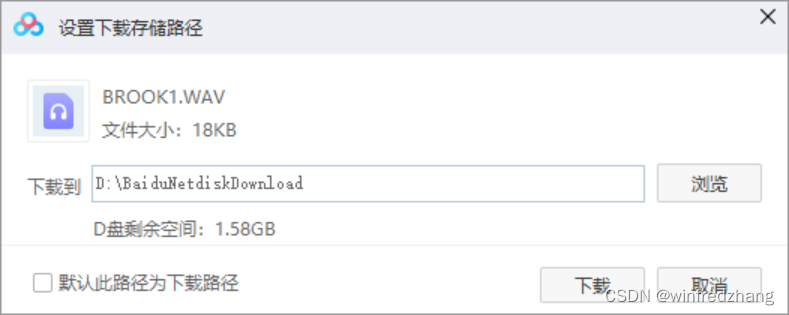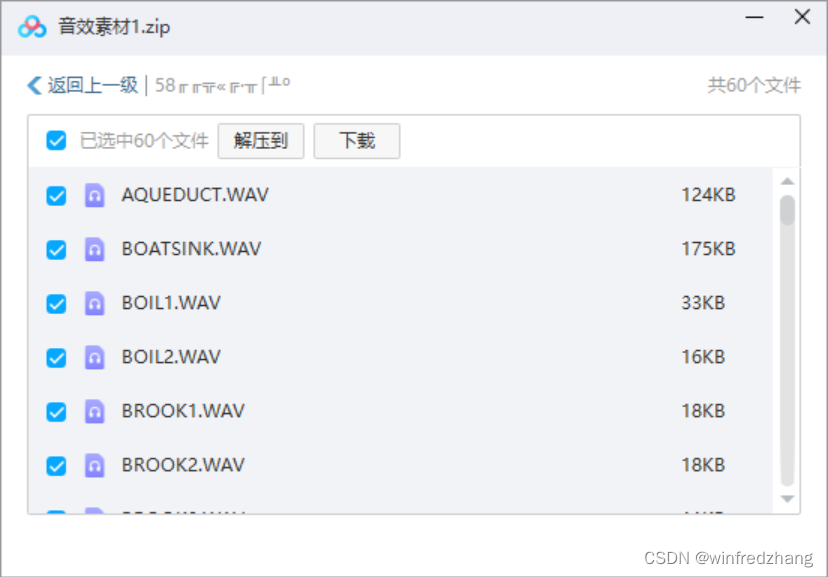 5、下载百度网盘中的音效数据,直接点击,在线解压,选择需要下载的wav文件保存在默认路径下。