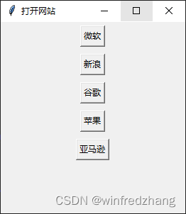 我们定义了一个名为 WebsiteWindow 的类,该类包含了打开不同网站的按钮。在构造函数中,我们首先为每个网站创建一个按钮,并指定按钮的文本和点击事件。每个按钮的点击事件都调用了一个相应的函数,该函数使用 webbrowser 模块打开了对应的网站。