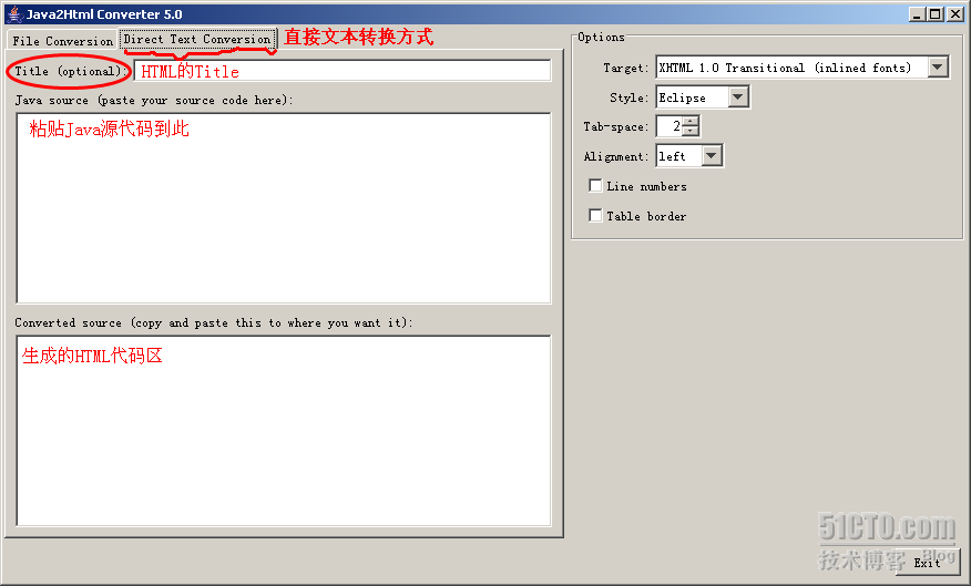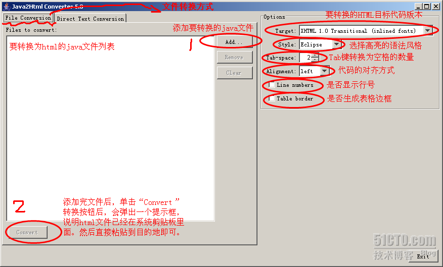 会弹出Java2Html工具的图形界面,转换方式分两种: