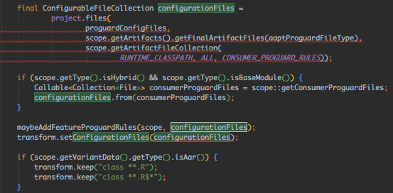跟下 applyProguardRules(),关注下述核心代码(前面的是和测试相关的):