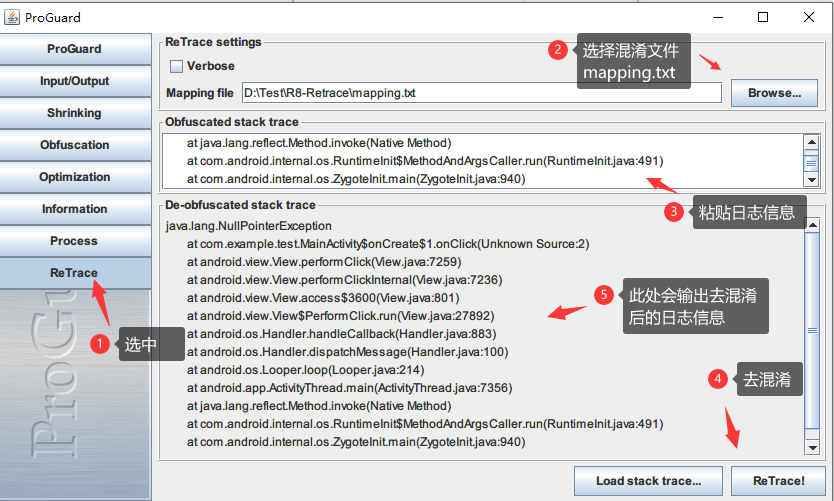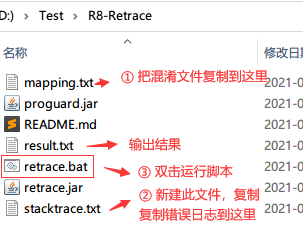 ProGuard和R8的混淆都可以去,老版本的脚本可能不支持R8,更新下sdk即可,不想更新的也可以直接用我提供的脚本包去R8混淆,下载地址(提取码: 1234):R8-Retrace.7z,使用流程如下图所示: