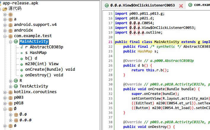 再接着 gradle assemble 打下包,用jadx打开生成的Release APK康康: