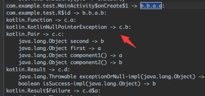 一种低效的解决方法:自行对照混淆后生成的 mapping.txt 文件,比如直接搜上面的b.b.a.a: