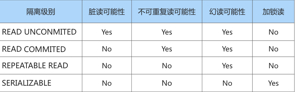 SQL 标准中规定,针对不同的隔离级别,并发事务可以发生不同严重程度的问题,具体情况如下: