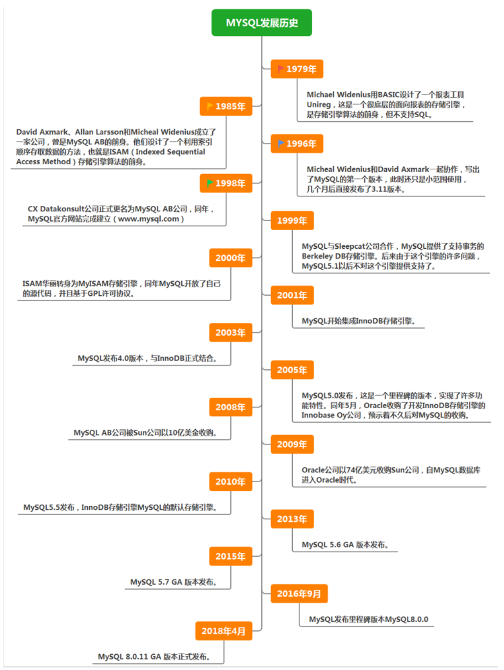 - 2008被 Sun 收购(10亿美金),2009年Sun被 Oracle 收购。 MariaDB 应运而生。(MySQL 的创造者担心 MySQL 有闭源的风险,因此创建了 MySQL 的分支项目 MariaDB)