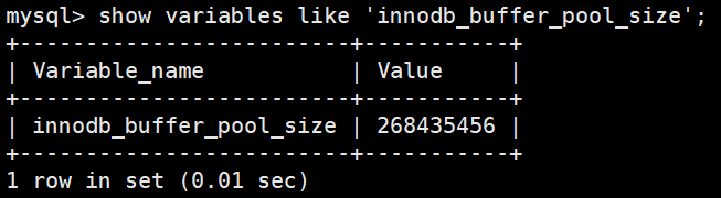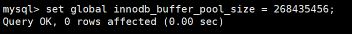 然后再来看下修改后的缓冲池大小,此时已成功修改成了 256 MB: