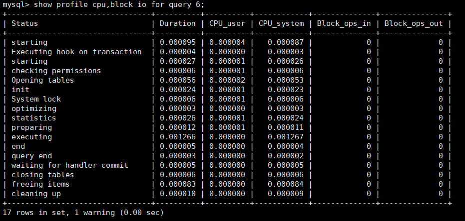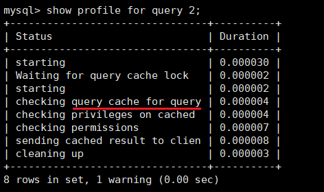 结论不言而喻。执行编号2时,比执行编号1时少了很多信息,从截图中可以看出查询语句直接从缓存中获取数据。