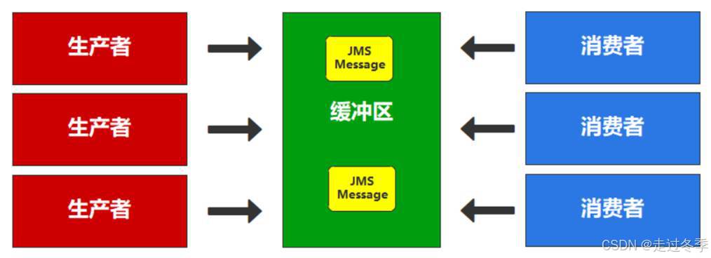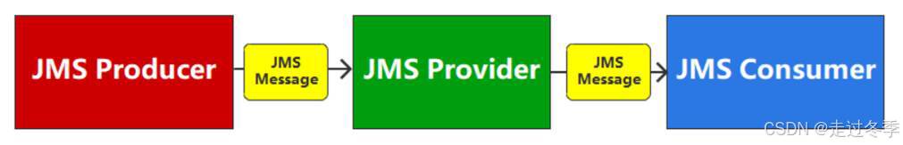 - JMS Provider:JMS消息提供者。其实就是实现JMS接口和规范的消息中间件,也就是我们提供消息服务的软件系统,比如RabbitMQ、ActiveMQ、Kafka。