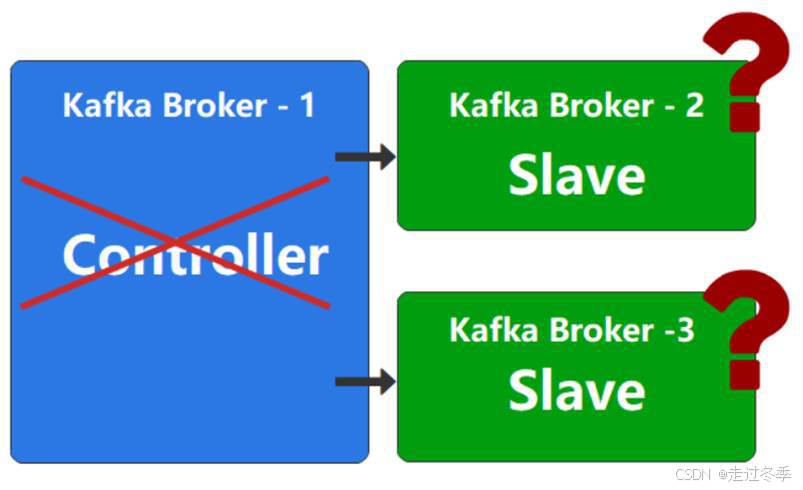 如果从剩余的2个Slave节点中选一个节点出来作为新的集群控制器是不是一个不错的方案,我们将这个选择的过程称之为:选举(elect)。方案是不错,但是问题就在于选哪一个Slave节点呢?不同的软件实现类似的选举功能都会有一些选举算法,而Kafka是依赖于ZooKeeper软件实现Broker节点选举功能。
