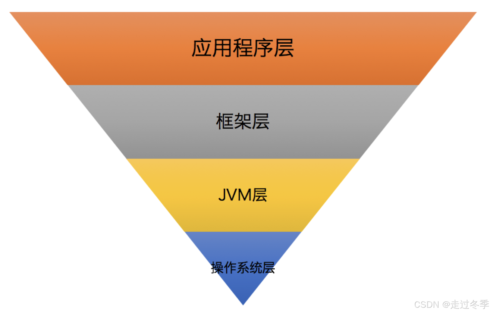 优化漏斗是一个调优过程中的分层漏斗,我们可以在每一层上执行相应的优化调整。总体来说,层级越靠上,其调优的效果越明显,整体优化效果是自上而下衰减的,如下图所示: