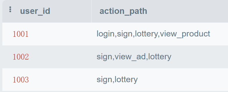 | 用户 | 行为序列 | 是否符合相邻路径(sign→lottery) |