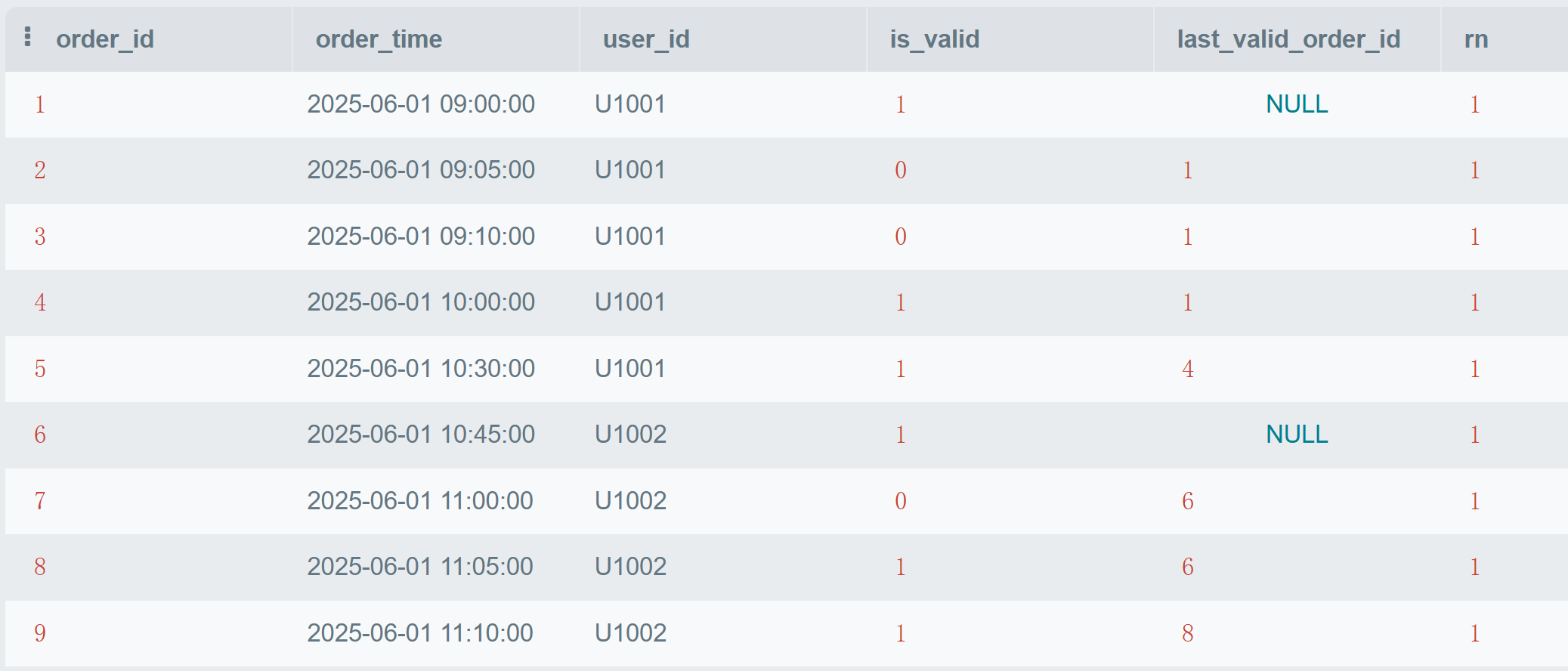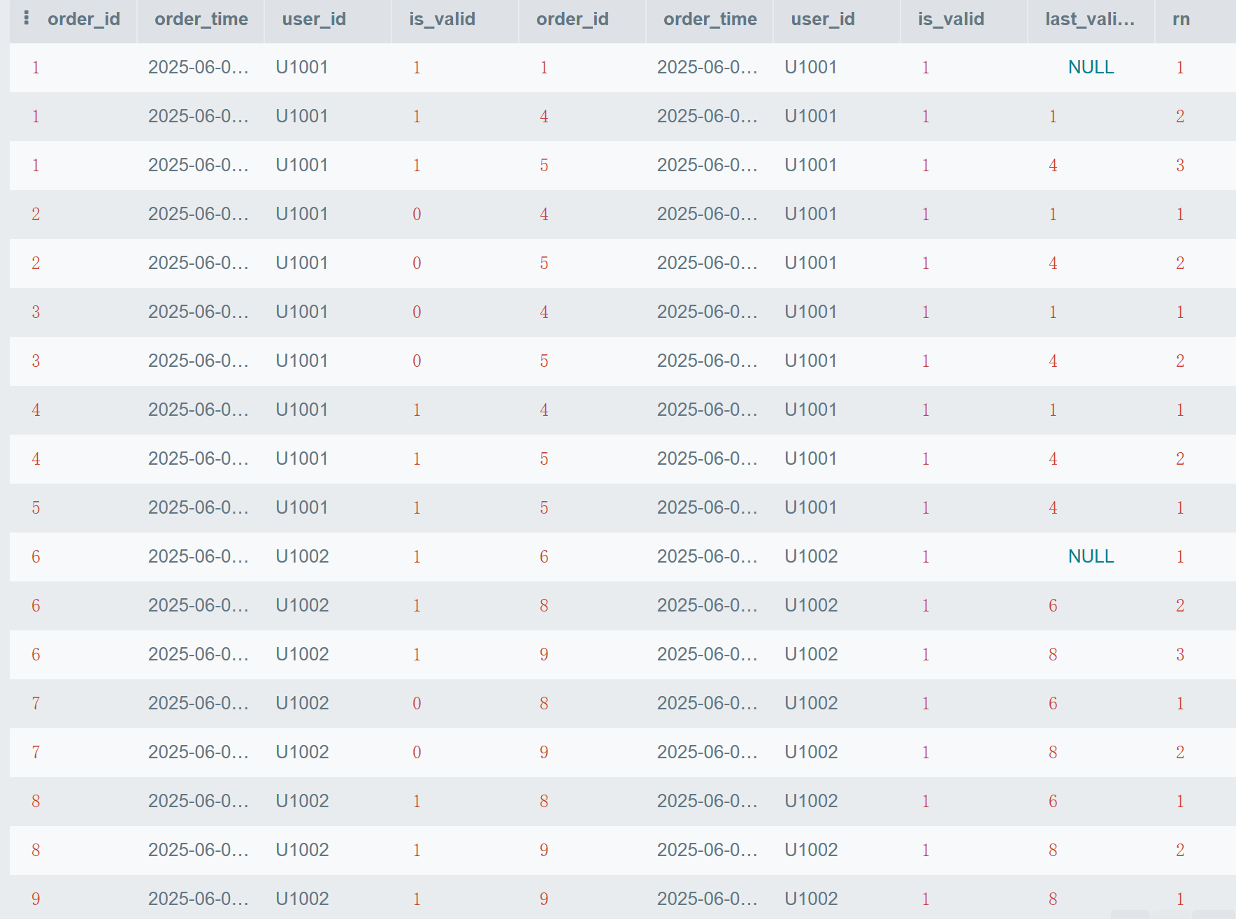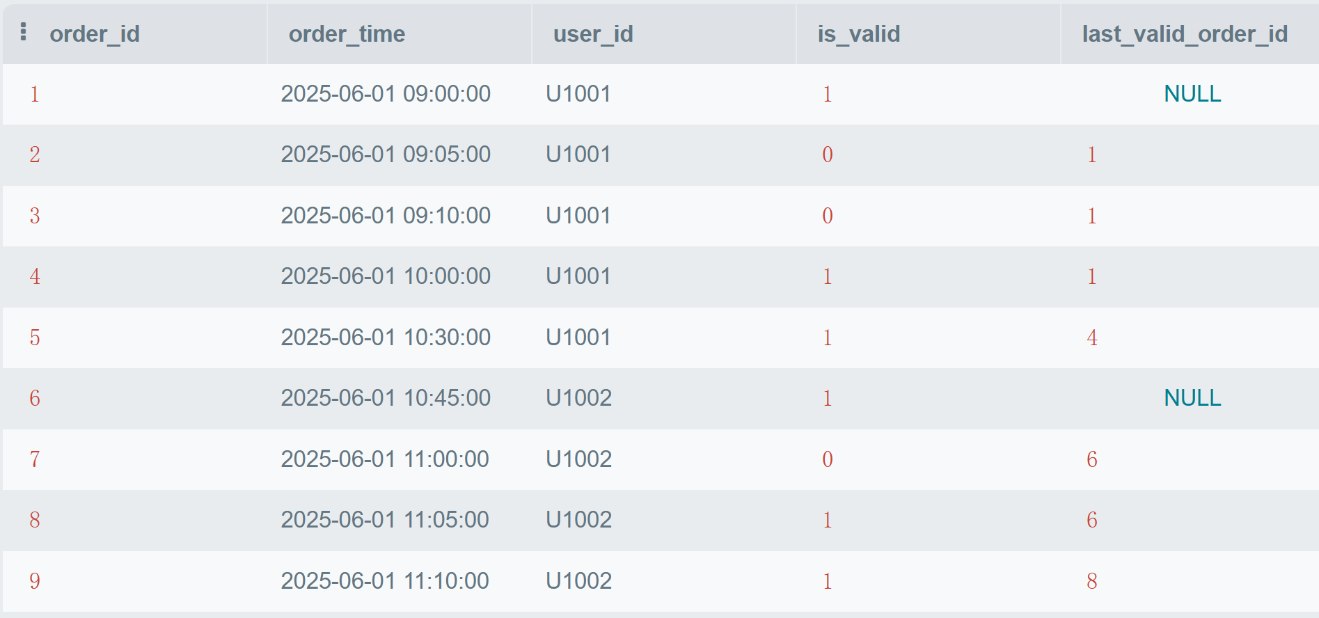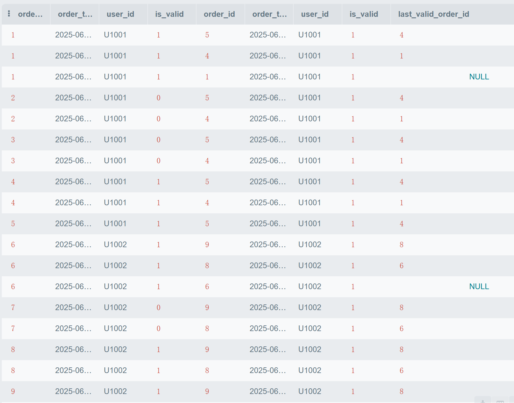 本题是查询上一条记录问题的升级版本,核心难点在于:无法预知相邻订单的有效性状态,这种不确定性增加了题目的难度。