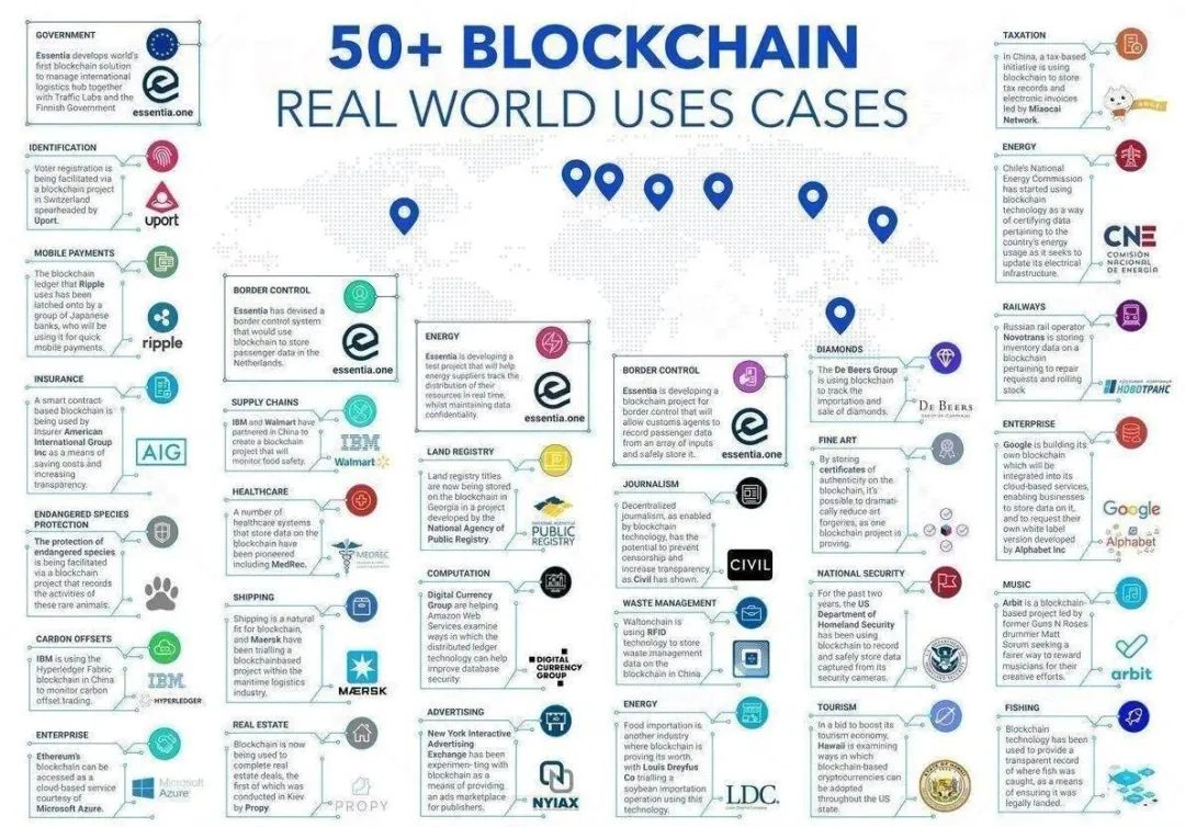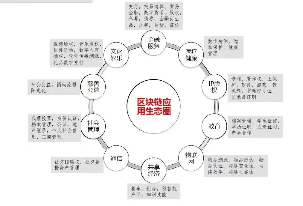 无论是教育医疗,还是金融娱乐,以及公益和社会管理,甚至通信、物联网、共享经济和知识产权,区块链都有一定的用武之地。