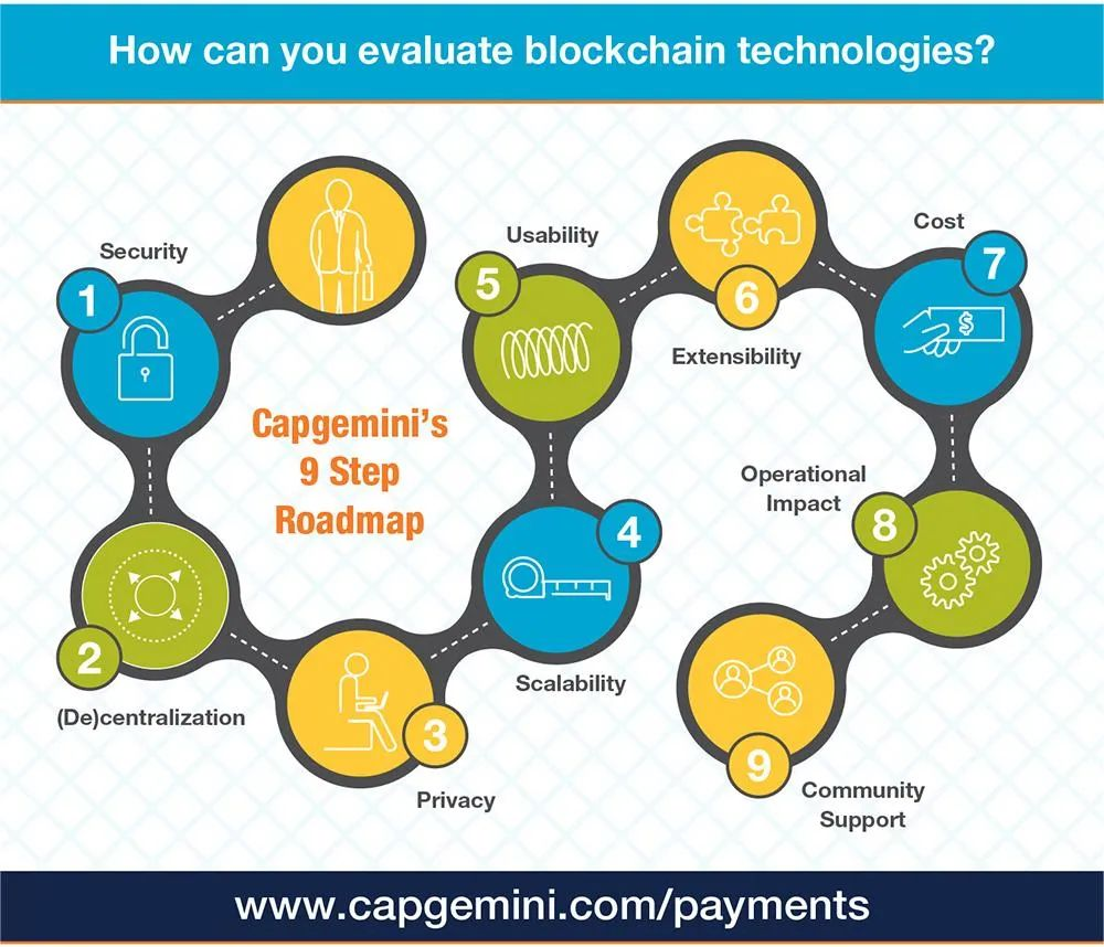 上图给出了评估某一种区块链技术的9个环节和步骤: