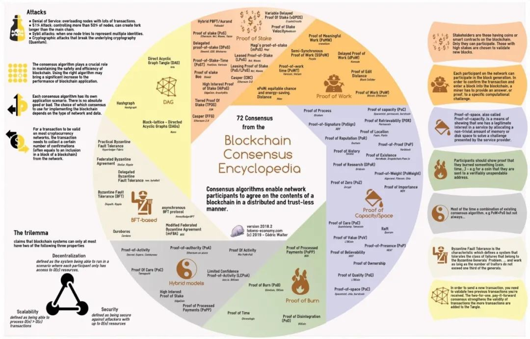 所谓的“共识”是区块链中的与众不同之处,截止到2018年2月,大致有72种关于区块链的共识。