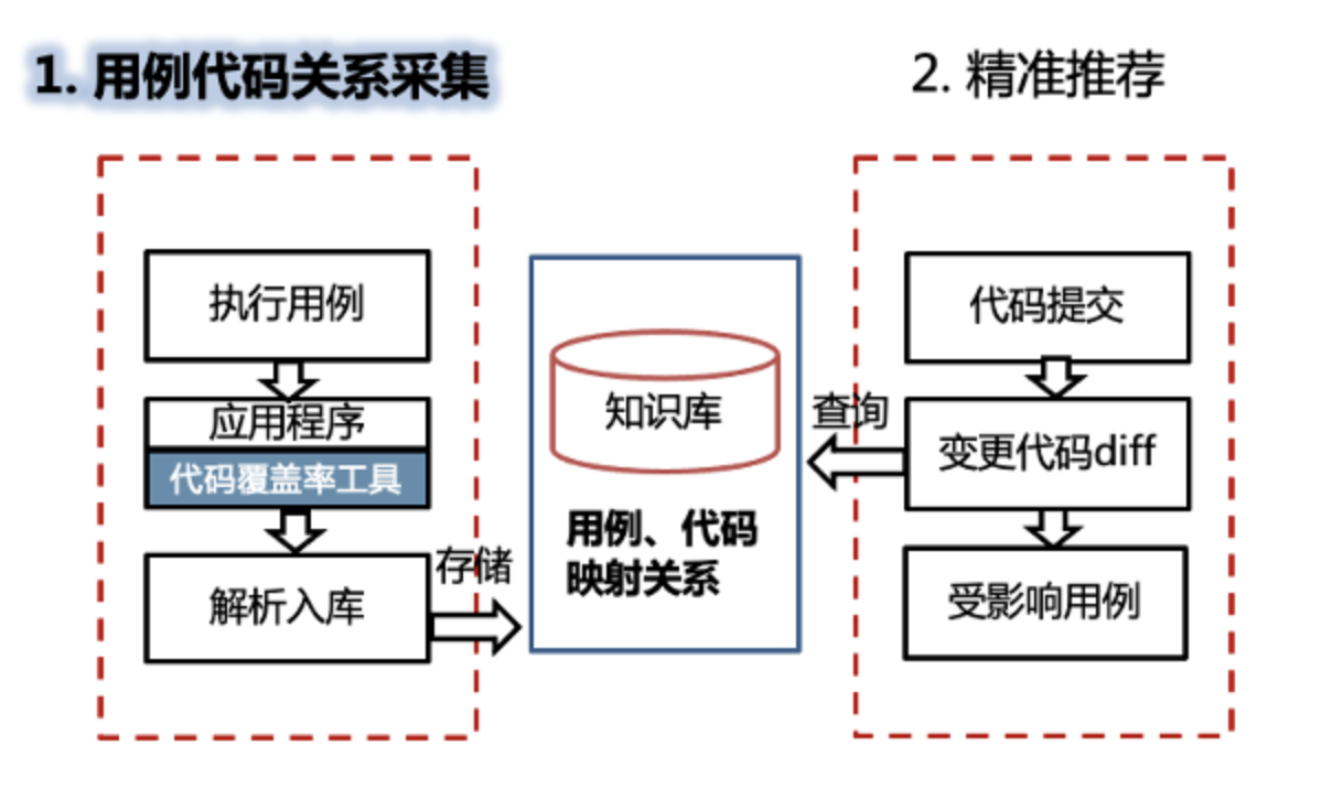 - 在用例执行过程中,通过代码覆盖率工具记录用例与代码的映射关系,保存在知识库中。