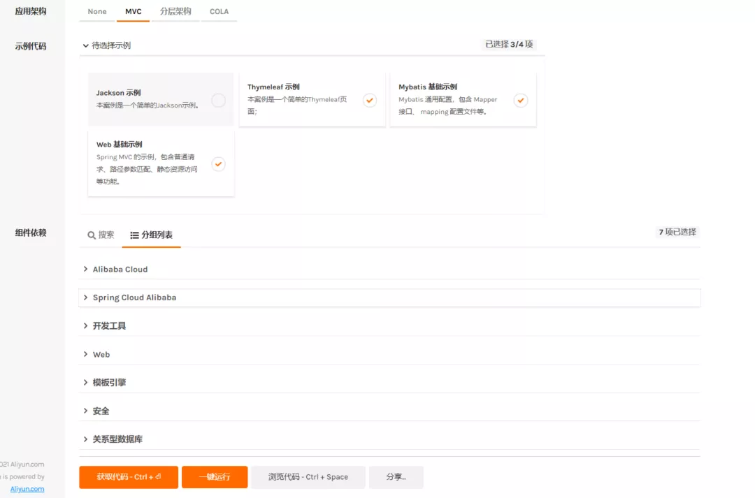 01 Aliyun Java Initializr:覆盖了 Spring Initializr 的所有功能,又在其基础上增加了很多实用功能,它几乎可以集成当下所有主流技术,只要勾选相应的模块就可以自动集成进来。
