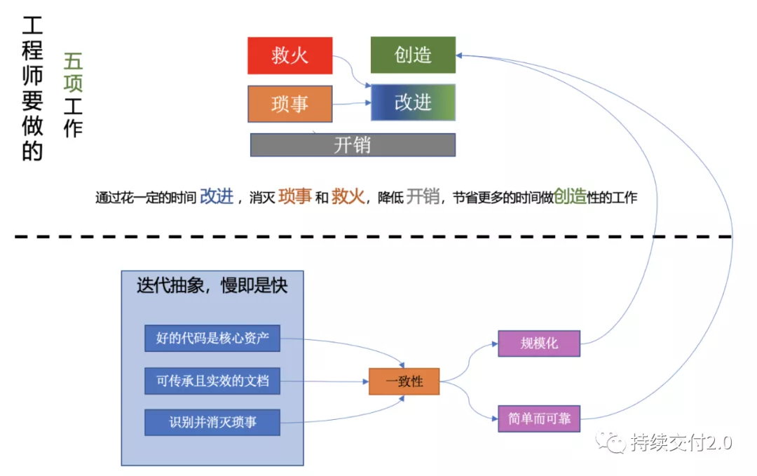 - 工程师除了要持续改进流程机制与工具之外,还要能够坚持工具平台尚无法完全提供的一致性,例如代码编写规范,代码设计范式等等。