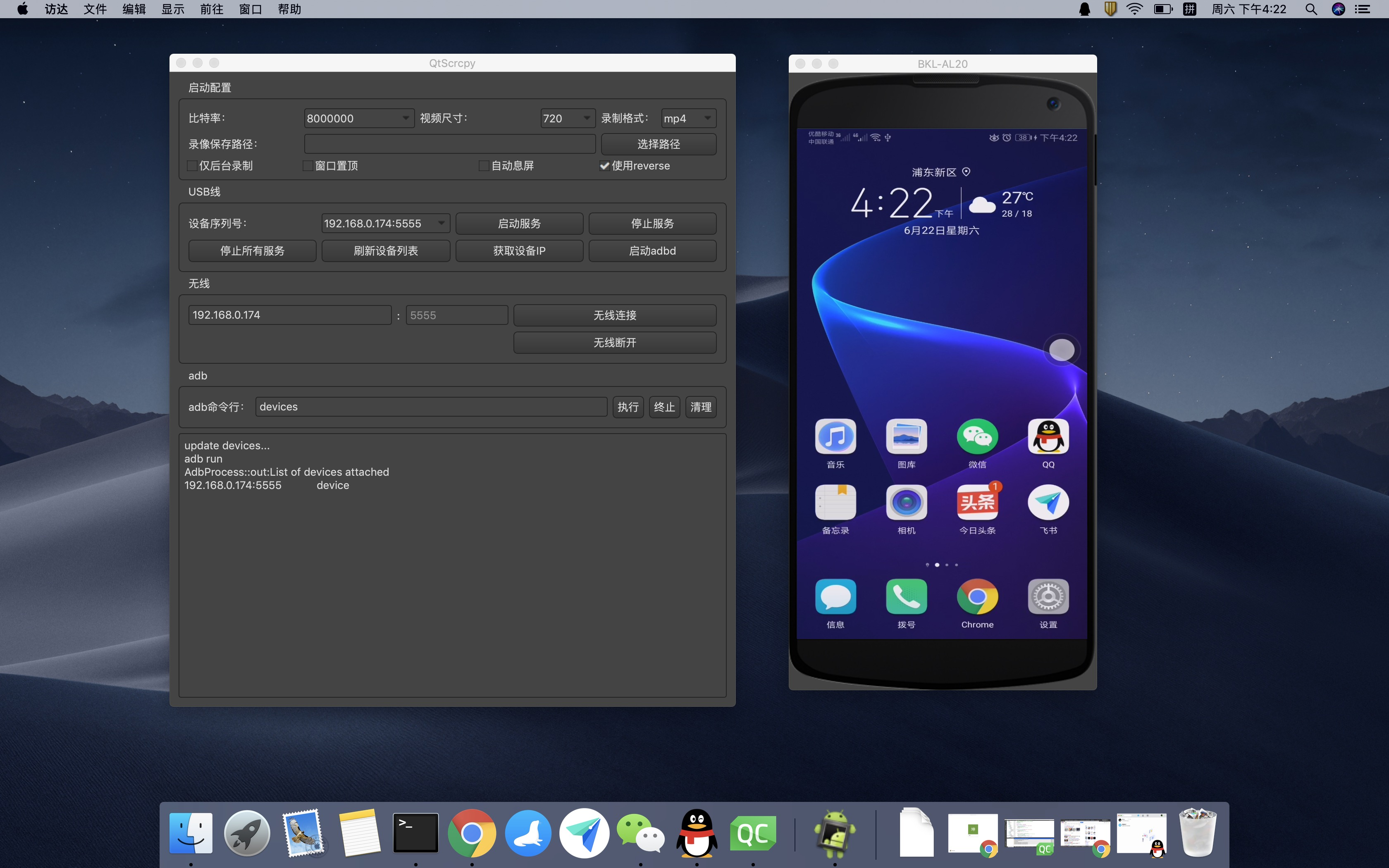 QtScrcpy 可以通过 USB(或通过 TCP/IP)连接 Android 设备,并进行显示和控制。