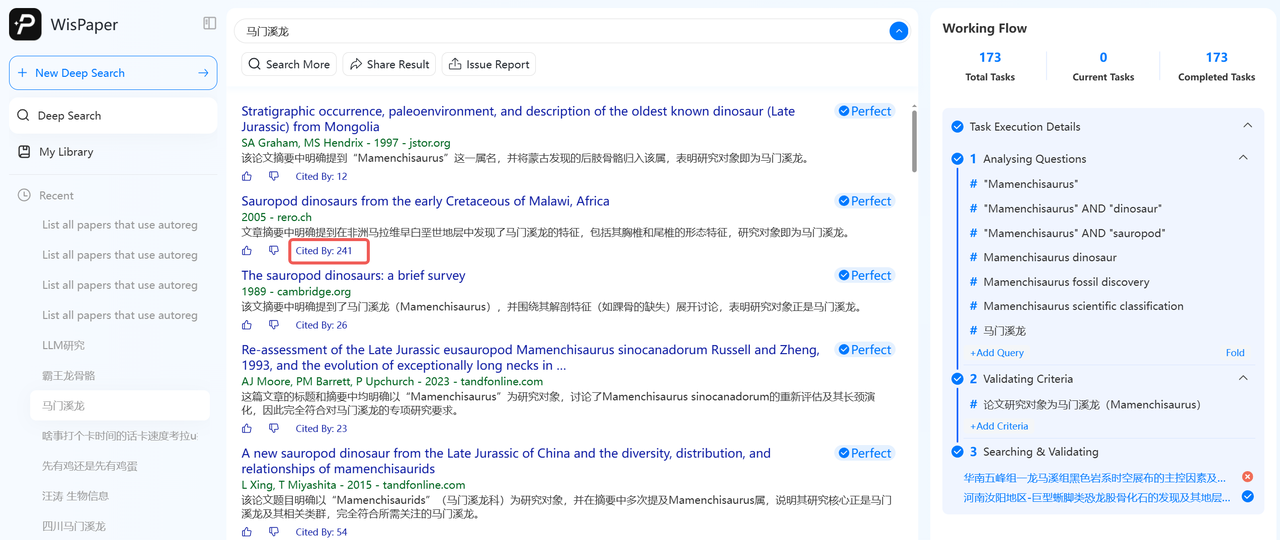 对接主流学术数据库如Google Scholar,精准查找全球范围内的相关前沿研究。比如当你搜索“LLM”这类专业术语时,传统搜索引擎或学术库给出海量结果,却不一定精准匹配你的需求。而 WisPaper 能智能拆解你的问题,通过二次验证和深度搜索,快速锁定最符合你要求的高质量文献。
