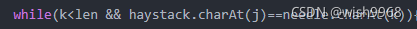 while(k<len && haystack.charAt(j)==needle.charAt(k)){//2*0 3*1 4*2