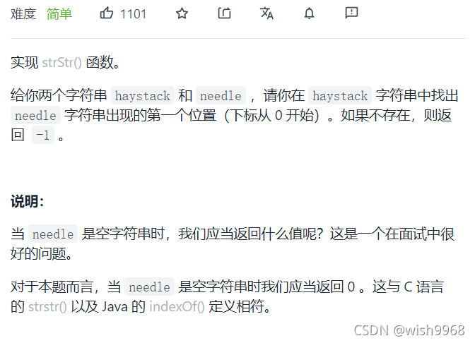 if(needle.length()==0) return 0;//当字符n为null时 如果h不为空,那么返回-1 如果二者都为空