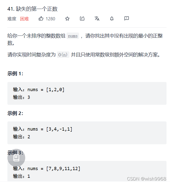 所以数组里的数 合法的最小正整数 应在1和nums.length之间 取最小 就看其他数符不符合