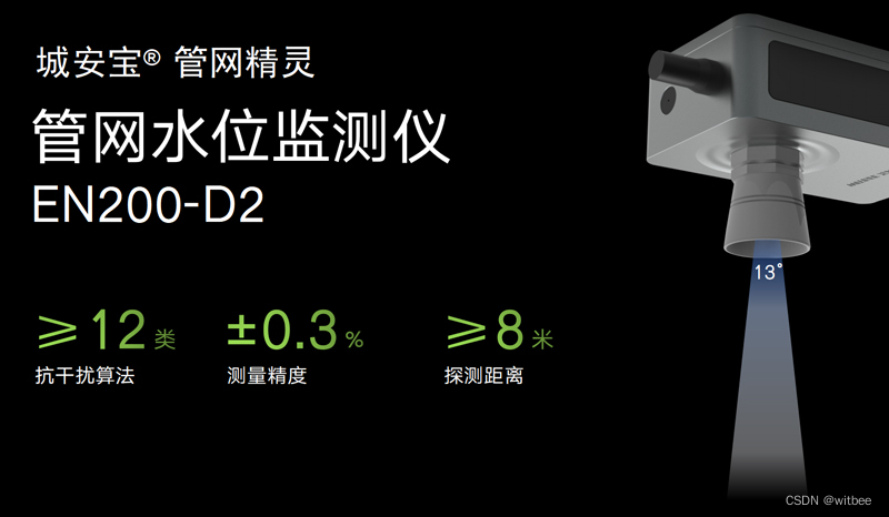 城安宝® 内涝精灵:超声波水位监测仪EN200-A2最深8米内涝积水监测,AIDMP抗干扰积水动态监测技术,适用于道路复杂环境的积水动态监测。