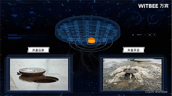 WITBEE®万宾®智能井盖传感器一种安装在井盖上的智能监测设备,通过集成了传感器技术和物联网技术,实现对井盖状态的实时监测和数据采集。可以感知井盖的位置、状态、健康等信息,当窨井盖发生倾斜、移动、健康危险度超过阈值时,智能井盖传感器能将报警信号自动上传给软件系统平台,便于工作人员快速定位、及时处理。