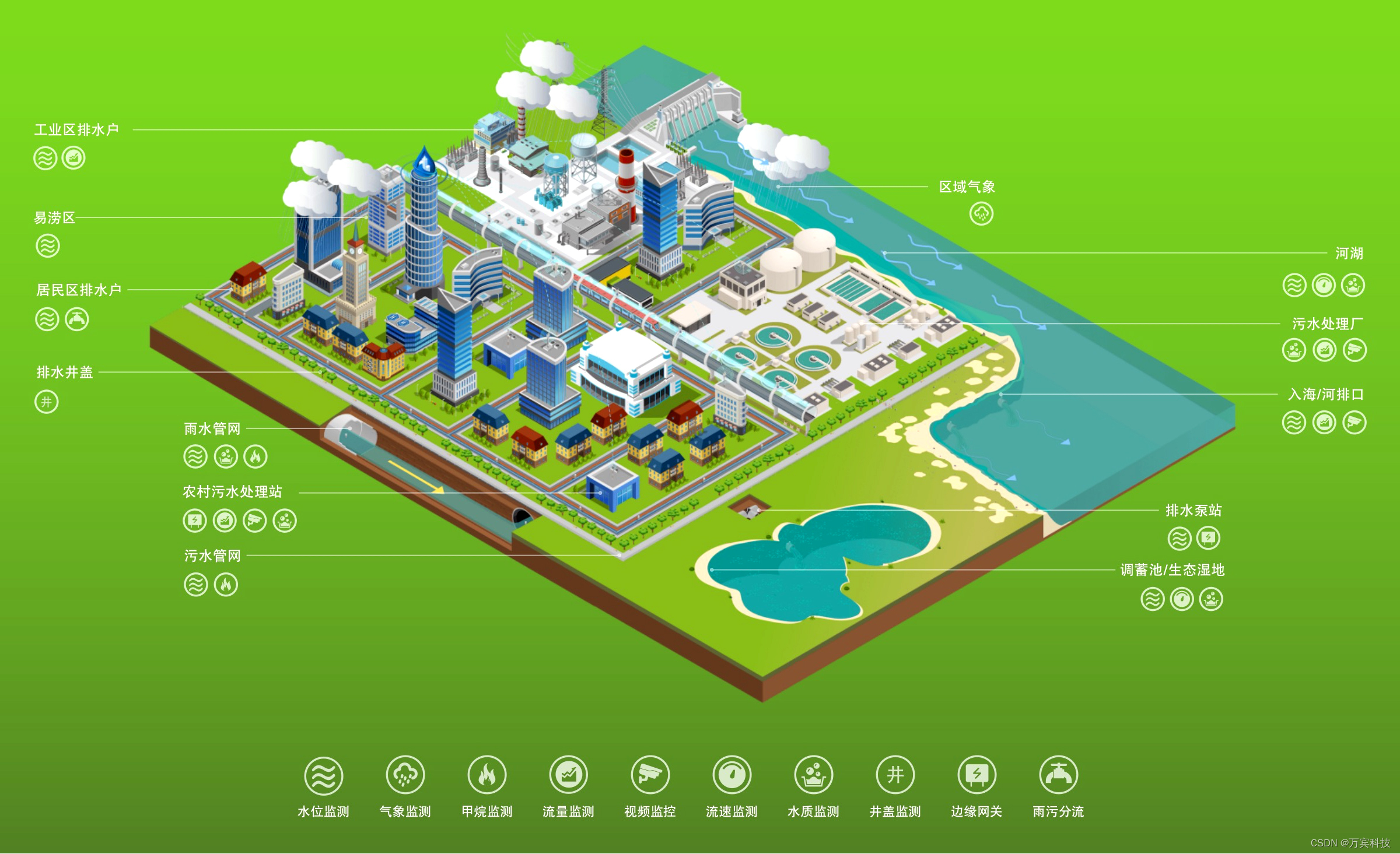 WITBEE®万宾®智慧排水监测系统利用AIoT智能物联、大数据、移动互联和工业互联网等新一代信息技术,整合住建、市政、水利与生态环境等各部门相关数据,针对重点排水户、排水设施关键节点、易涝积水点、河湖等布设城市生命线智能监测仪器,提供城市排水系统运行的智能分析和仿真预测,城市内涝的专用防汛设备和抢险物资智能调度,建立覆盖“源-网-站-厂-河”一体化的智慧排水监测系统,满足日常管理、运行调度、灾情预判、预警预报、防汛调度、应急抢险等功能需要。