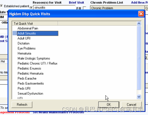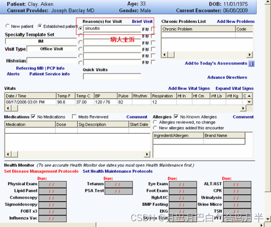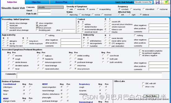 病人主诉:鼻窦炎sinusitis,这里可以有多个主诉(同专业的两个不同主诉,分开处理)