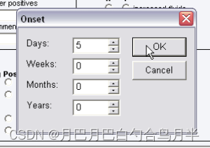 发病时间(几天)onset、病情的发展和演变status、程度severity、频率frequency、部位Affected Side