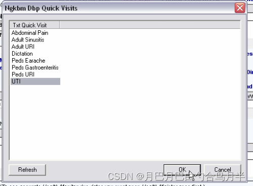 另一个例子中,UTI的模板,可以看出不同visit模板装载的项目是不同的。