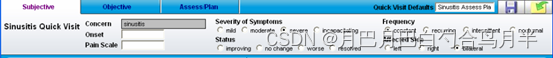 载入quick visit模板 adult sinusitis,这决定了HPI,ROS的显示的项目