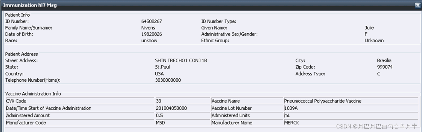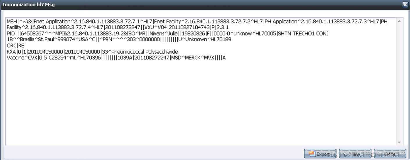 点击按钮“View Hl7 Msg“,查看生成的HL7格式的信息: